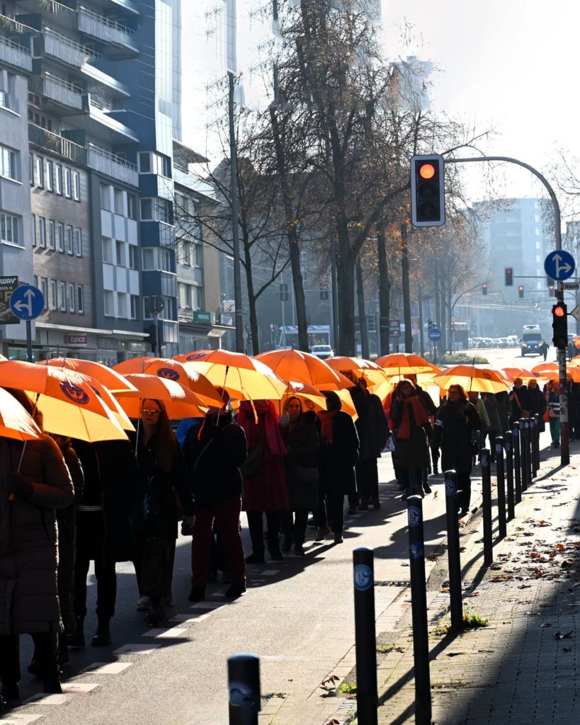 Der Name „Eine Milliarde erhebt sich“ ist dabei alles andere als symbolisch: Laut UN-Statistik erfährt jede dritte Frau weltweit mindestens einmal in ihrem Leben körperliche und/oder sexualisierte Gewalt – das sind rund eine Milliarde Betroffene. Unsere Past-Präsidentin Mechthild brachte es in ihrer kurzen Rede klar auf den Punkt. Sie rief dazu auf, toxischer Männlichkeit entschlossen entgegenzutreten – und wünschte sich noch mehr Männer, die öffentlich gegen Gewalt an Frauen und Mädchen Stellung beziehen.